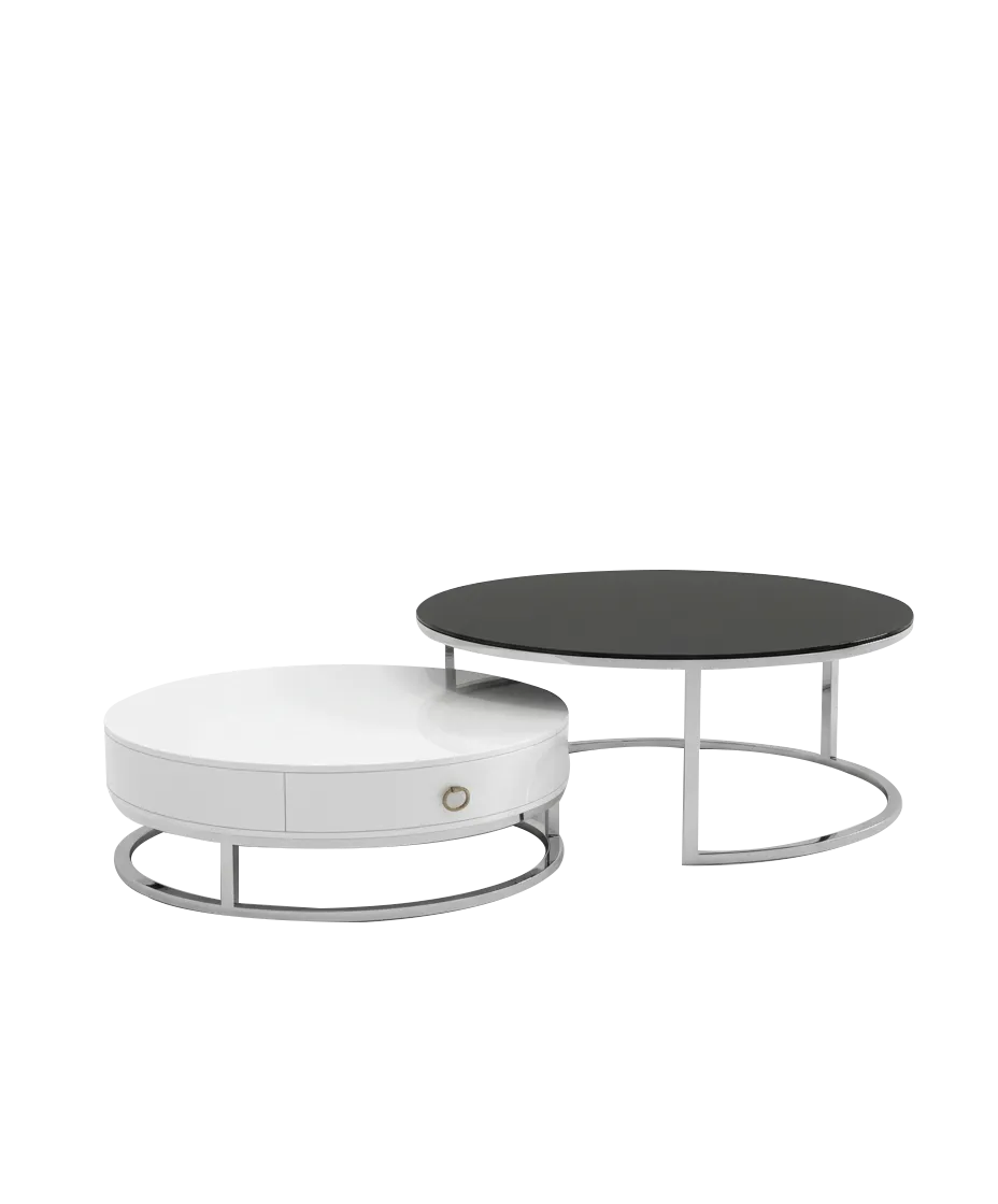 Description: A modern duo coffee table featuring a balanced contrast between light and metallic-inspired tones. Its contemporary character makes it a practical and attractive addition to elegant living spaces.