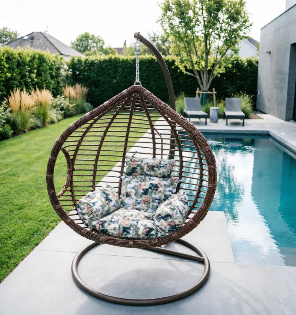 Description: A modern brown swivel chair created for outdoor relaxation and everyday comfort. Its practical rotating design and elegant appearance make it suitable for patios, gardens, and outdoor lounge setups that need both style and function.